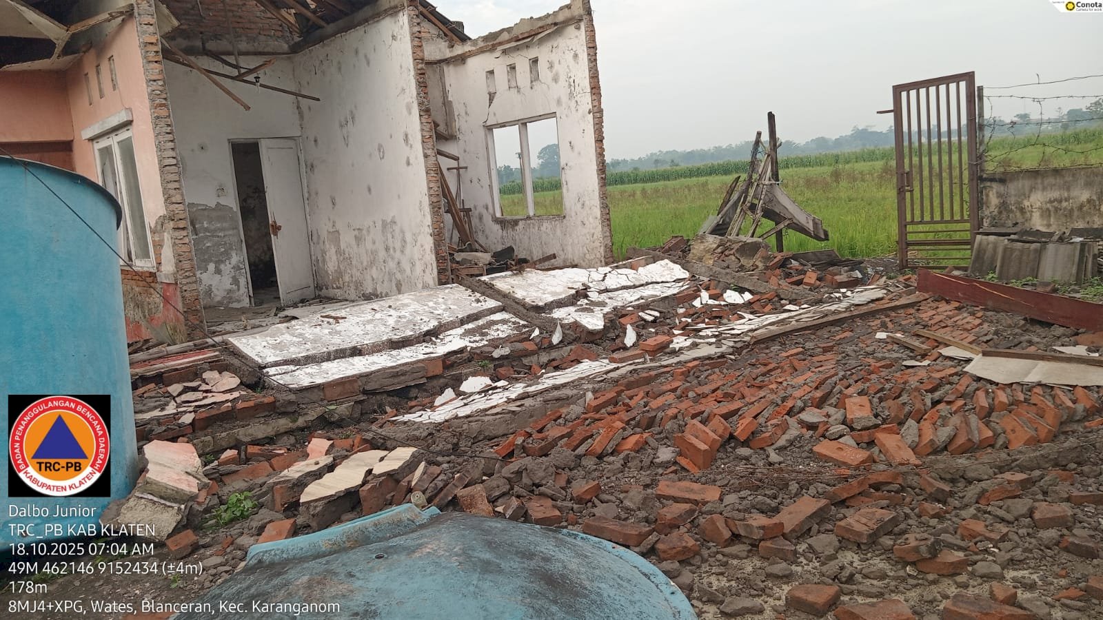 Tim Reaksi Cepat (TRC) PB BPBD Klaten segera melakukan pengecekan kondisi bangunan, mendata kebutuhan mendesak, serta berkoordinasi dengan perangkat desa setempat untuk penanganan lebih lanjut.
