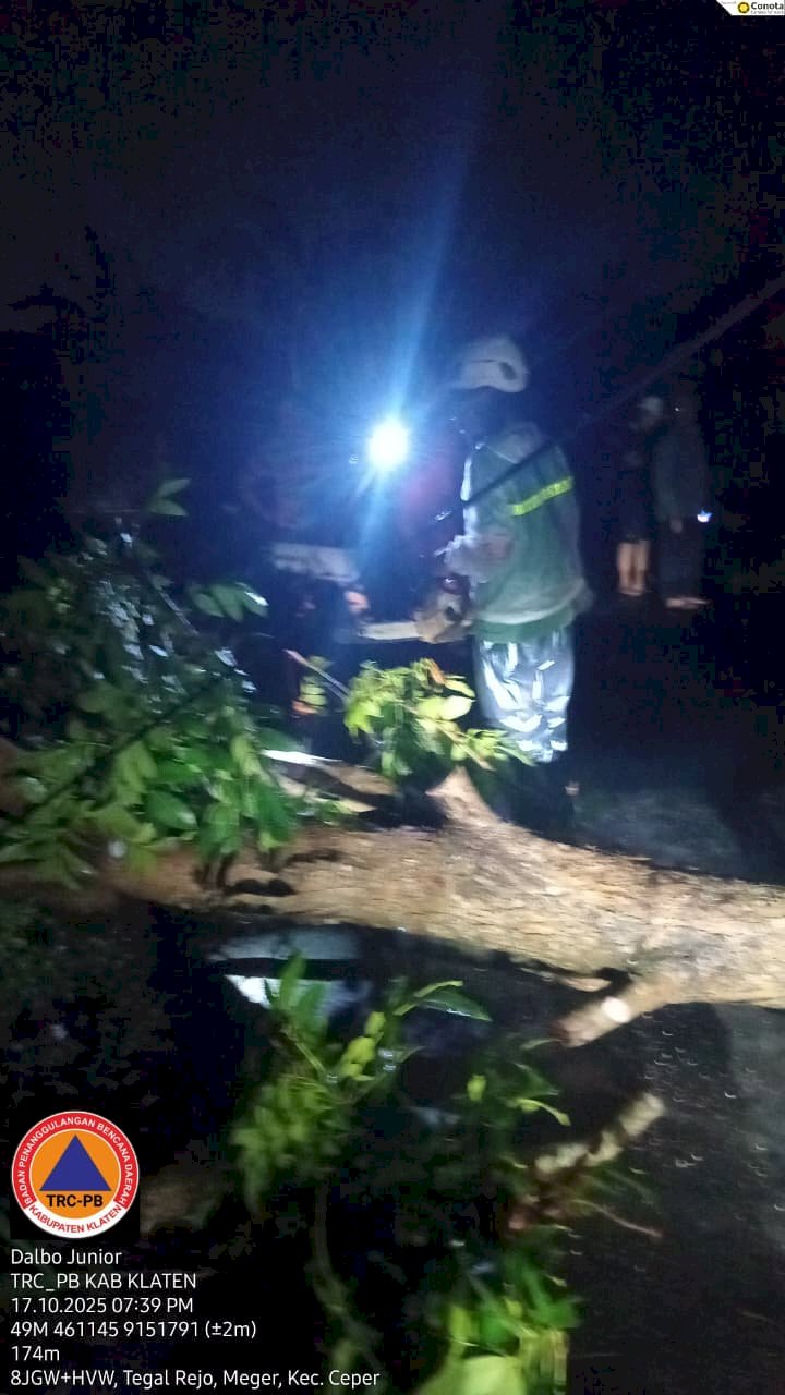 KLATEN - Jumat 17 Oktober 2025 Sekitar Pukul 17:15 WIB. Terjadi Cuaca Ekstreme di 6 kecamatan diantara nya kecamatan Trucuk, Kecamatan klaten utara, kecamatan bayat, kecamatan kalikotes, kecamatan kemalang, dan kecamatan ceper.