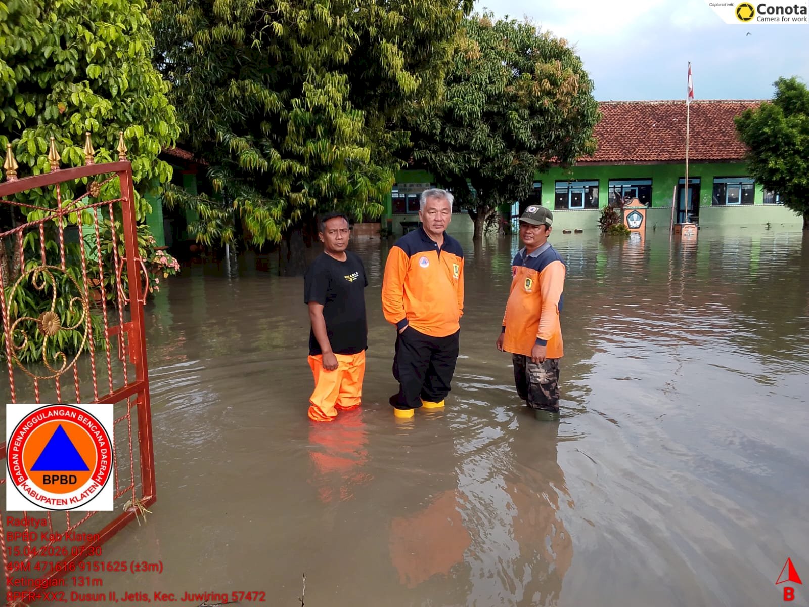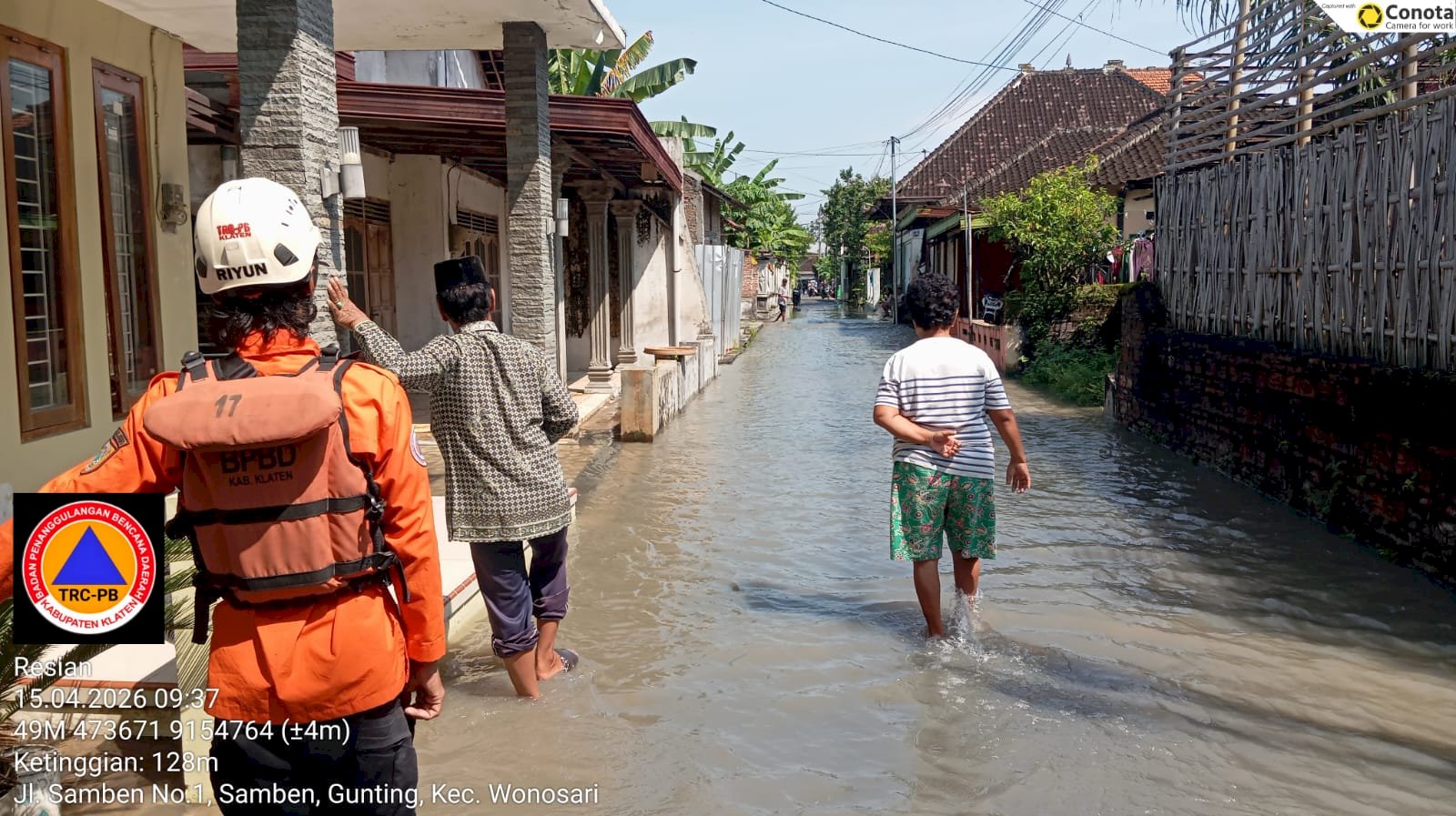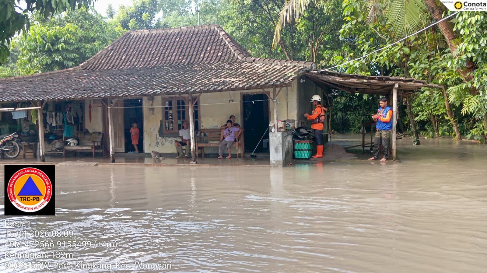 KLATEN - Selasa (14/4/2026) sekira pukul 20.00 WIB wilayah Kabupaten Klaten mulai diguyur hujan dengan intensitas lebat dan berlangsung cukup lama hingga Rabu (15/4/2026) sekira pukul 05.00 WIB.