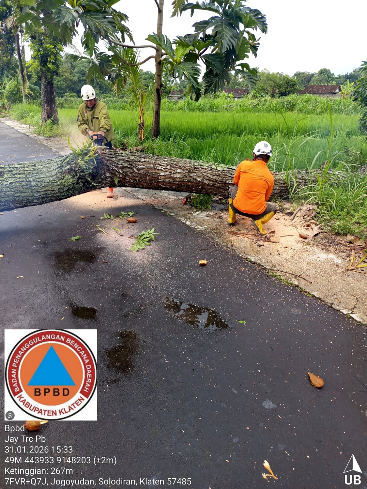 KLATEN - Pada Sabtu, 31 Januari 2026, terjadi kejadian pohon tumbang yang menimpa sawah dan menutup akses jalan di Desa Losari, Kecamatan Manisrenggo. Kejadian terjadi pada pukul 14.45 WIB, di mana angin kencang menyebabkan pohon menjadi tumbang.