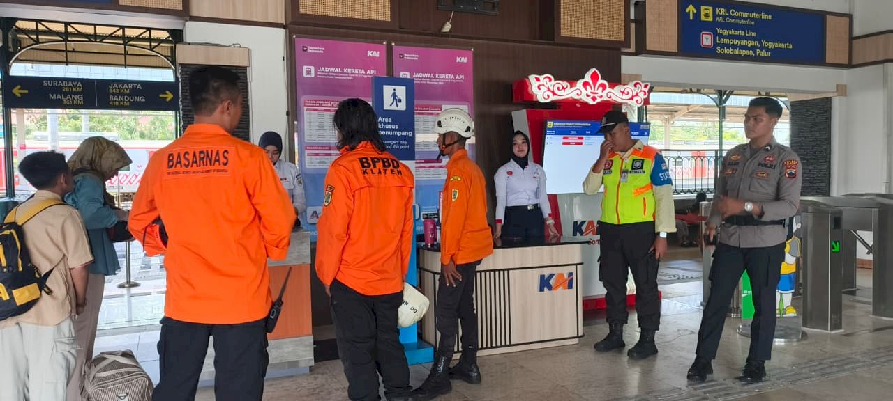KLATEN - Sabtu (14/3/2026) Dalam rangka mendukung pengamanan arus mudik dan aktivitas masyarakat menjelang Hari Raya Lebaran, BPBD bersama Petugas POSKO SARSUS KLATEN Basarnas Kantor Surakarta melaksanakan giat pemantauan arus mudik lebaran 2026 sarana transportasi umum di Stasiun Klaten dan terminal Ir. Soekarno serta pantauan wisata Rowo Jombor dan Umbul Ponggok.