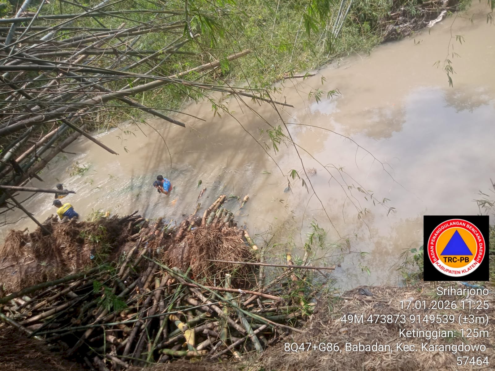 Gotong royong pembersihan ini melibatkan personil dari BPBD bersama dengan BBWS Bengawan Solo, Relawan Karangdowo, Pemerintah Desa Babadan, Camat Karangdowo, TNI, Polri, dan Warga masyarakat.