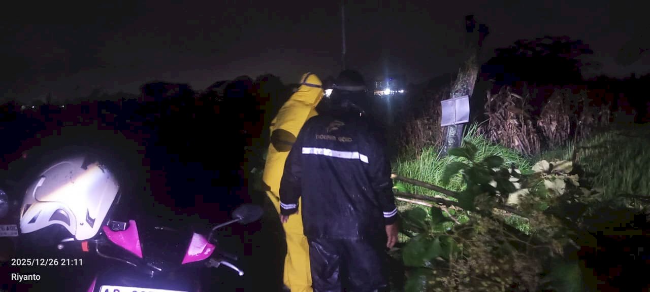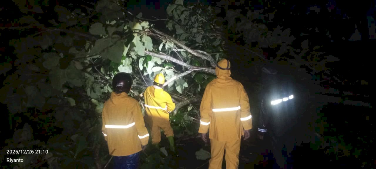 KLATEN - Pada Jum'at, 26 Desember 2025, terjadi kejadian pohon tumbang yang menutup akses jalan Pulon Janti di Dukuh Jetakan RT 001/ RW 010 Desa Pucang Miliran, Kecamatan Tulung. Kejadian terjadi pada pukul 20.38 WIB, di mana angin kencang menyebabkan pohon tumbang menutupi akses jalan.