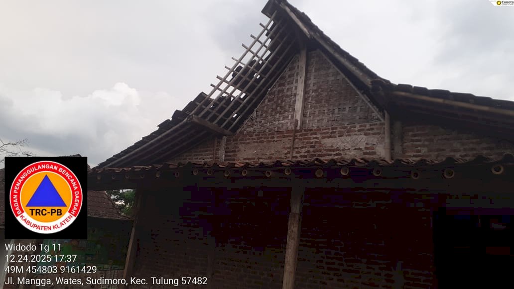 KLATEN - Hujan deras disertai angin kencang melanda kecamatan Tulung, Kabupaten Klaten, Rabu (24/12/2025), mengakibatkan beberapa pohon tumbang di desa Sudimoro dan desa Sorogaten. Badan Penanggulangan Bencana Daerah (BPBD) Kabupaten Klaten segera melakukan assessment dan penanganan di lokasi terdampak.