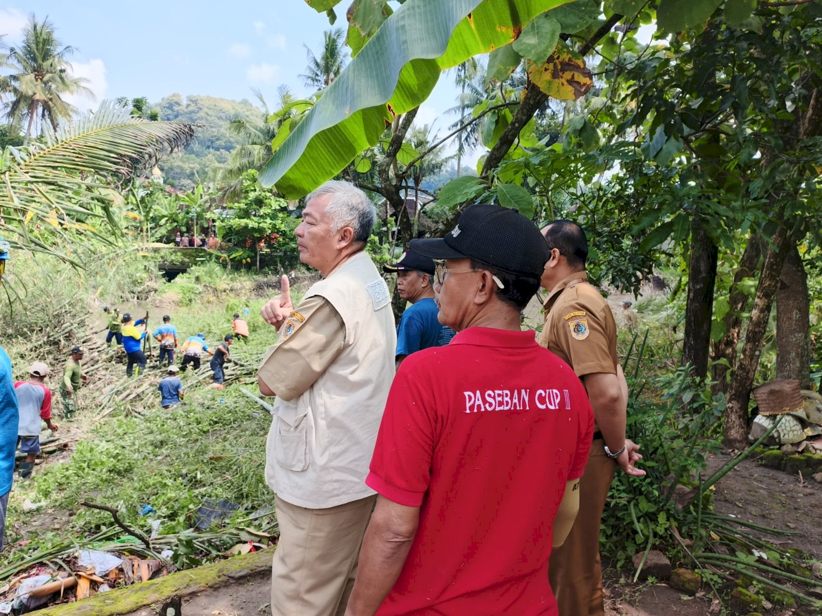 KLATEN - Kepala Pelaksana (Kalaksa) Badan Penanggulangan Bencana Daerah (BPBD) Kabupaten Klaten, Bapak Syahruna monitoring langsung pelaksanaan kegiatan gotong royong pembersihan rumpun bambu roboh ke sungai di Desa Paseban, Kecamatan Bayat, Senin (9/3/2026).