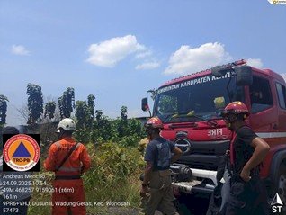 KLATEN - Rabu 24 September 2025 Sekitar Pukul 10:16 WIB. Terjadi Kebakaran lahan di Dukuh Sekaran RT 01 / RW 01, Desa Sekaran, Kecamatan Wonosari