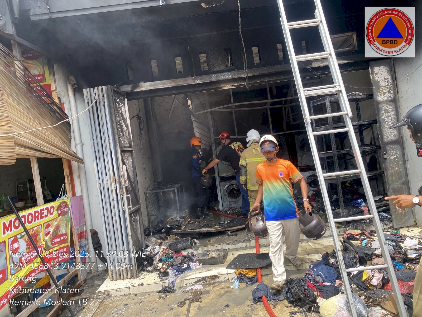 Tim Reaksi Cepat (TRC) BPBD Kabupaten Klaten mendapat informasi langsung terjun untuk memastikan api padam dan tidak merembet. TRC BPBD dan Petugas Damkar Klaten berhasil memastikan api padam di ruang 4x8 meter persegi itu dan mengamankan sumber api sehingga tidak kembali menyebabkan api.