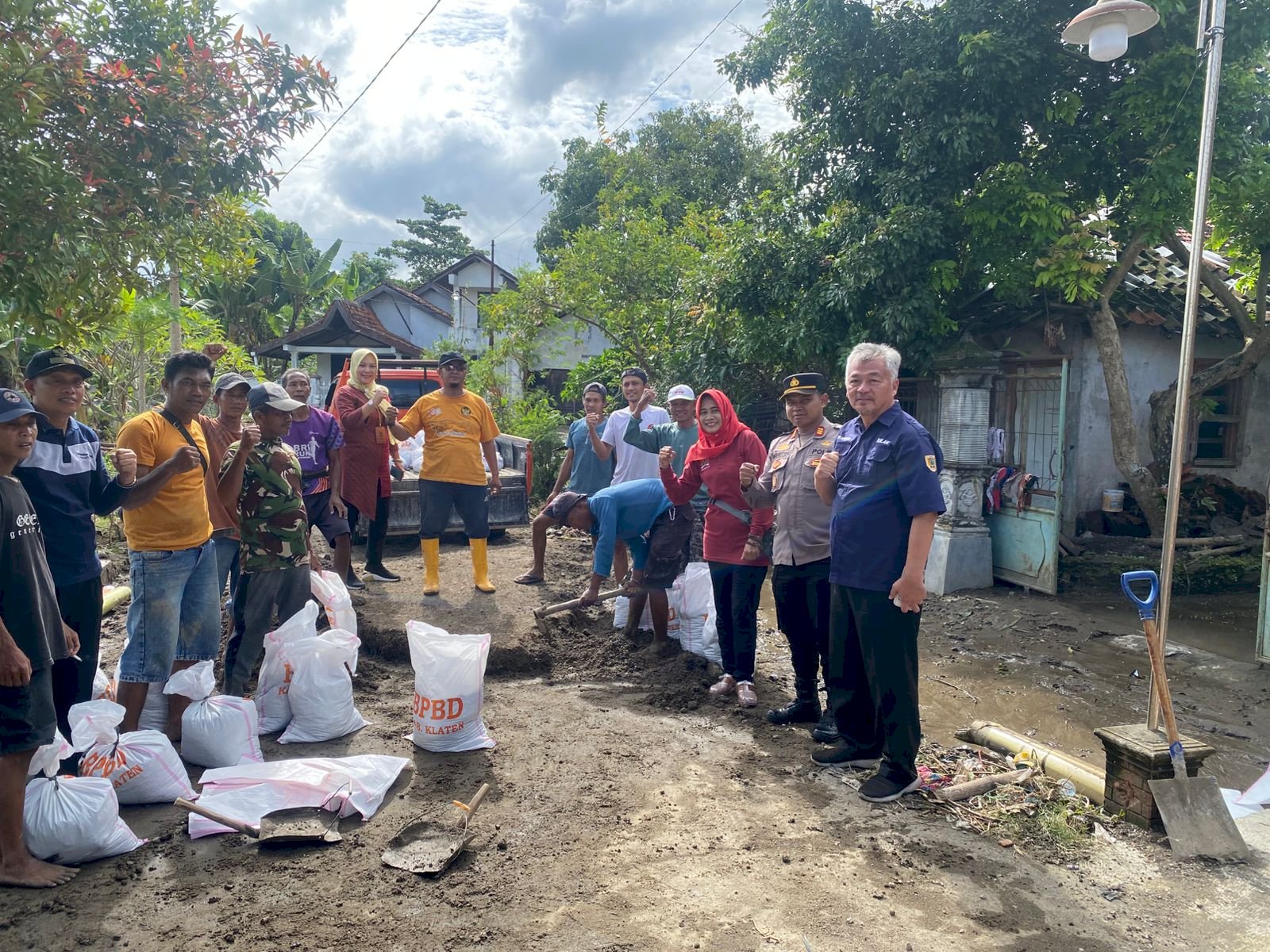 Ibu Hj Kadarwati juga turut memberikan bantuan sembako kepada korban banjir. Beliau juga memastikan Kesehatan para warga dan mengajak para warga agar tidak cemas.