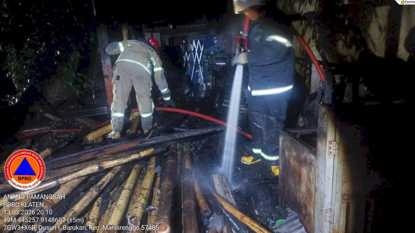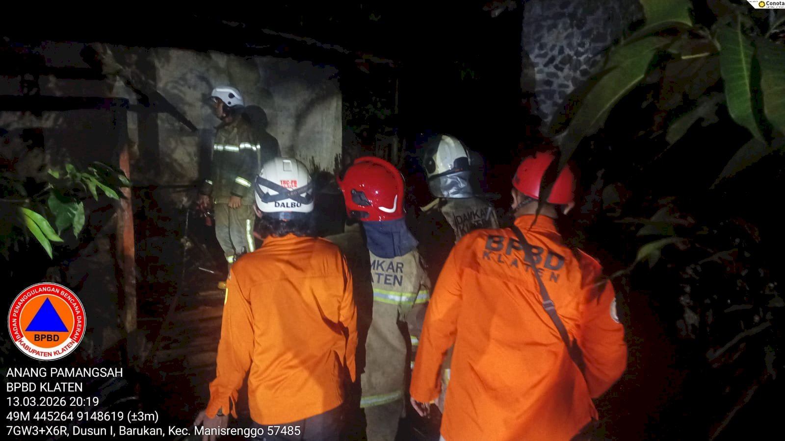 KLATEN - Anggota Fire Rescue Dinas Pemadam Kebakaran dan Penyelamatan (Damkar) Kabupaten Klaten berhasil padamkan kebakaran rumah warga. Kebakaran ini terjadi di Dukuh Dawung RT 03/ RW 01, Desa Barukan, Kecamatan Manisrenggo, Jum'at (13/3/2026).