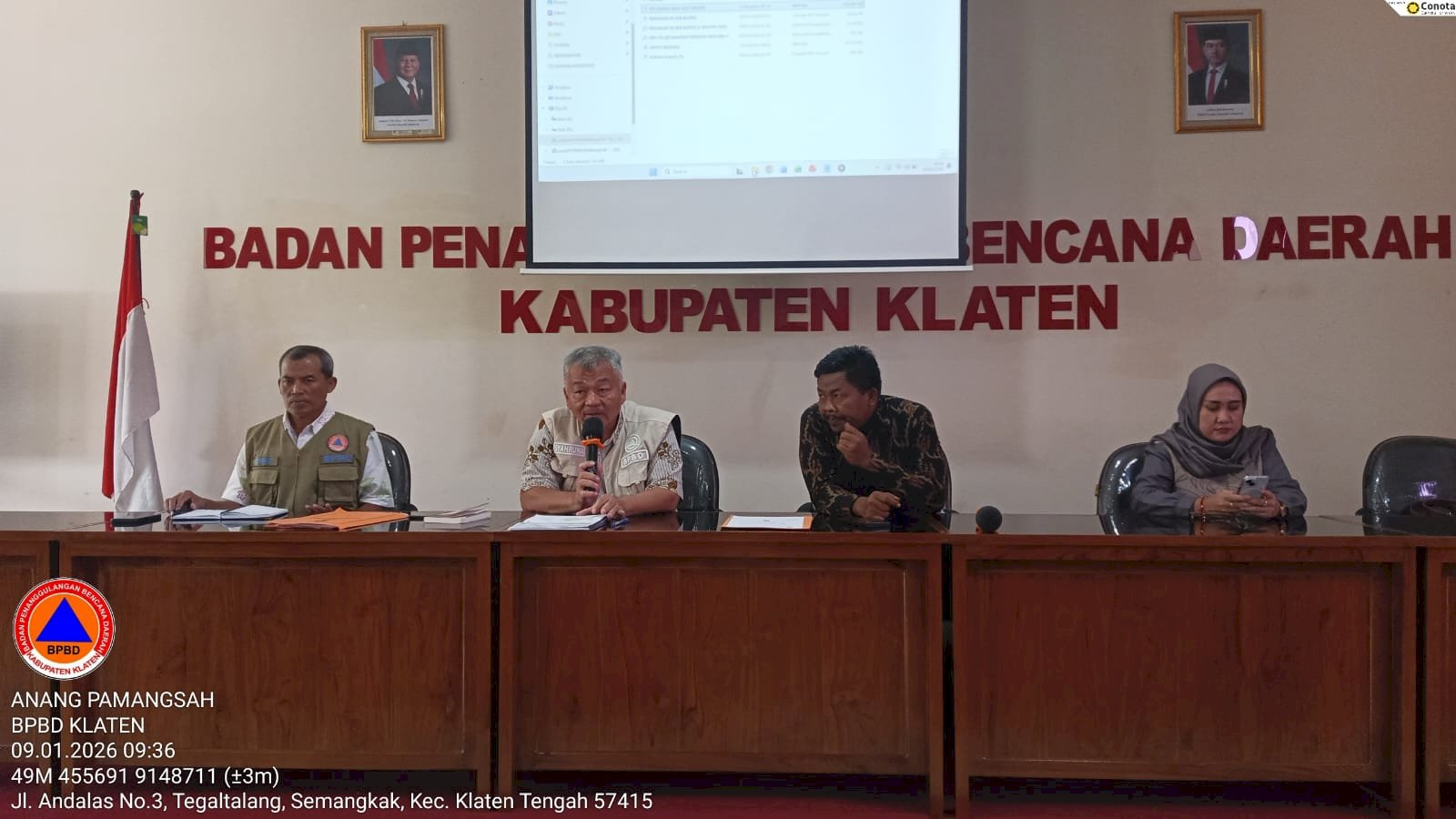 KLATEN - Jum'at, 10 Januari 2026, Badan Penanggulangan Bencana Daerah (BPBD) Kabupaten Klaten menerima kunjungan kerja dari Dewan Perwakilan Rakyat Daerah (DPRD) Kabupaten Mojokerto, melakukan kegiatan studi banding yang dilaksanakan di Kantor BPBD Kabupaten Klaten.