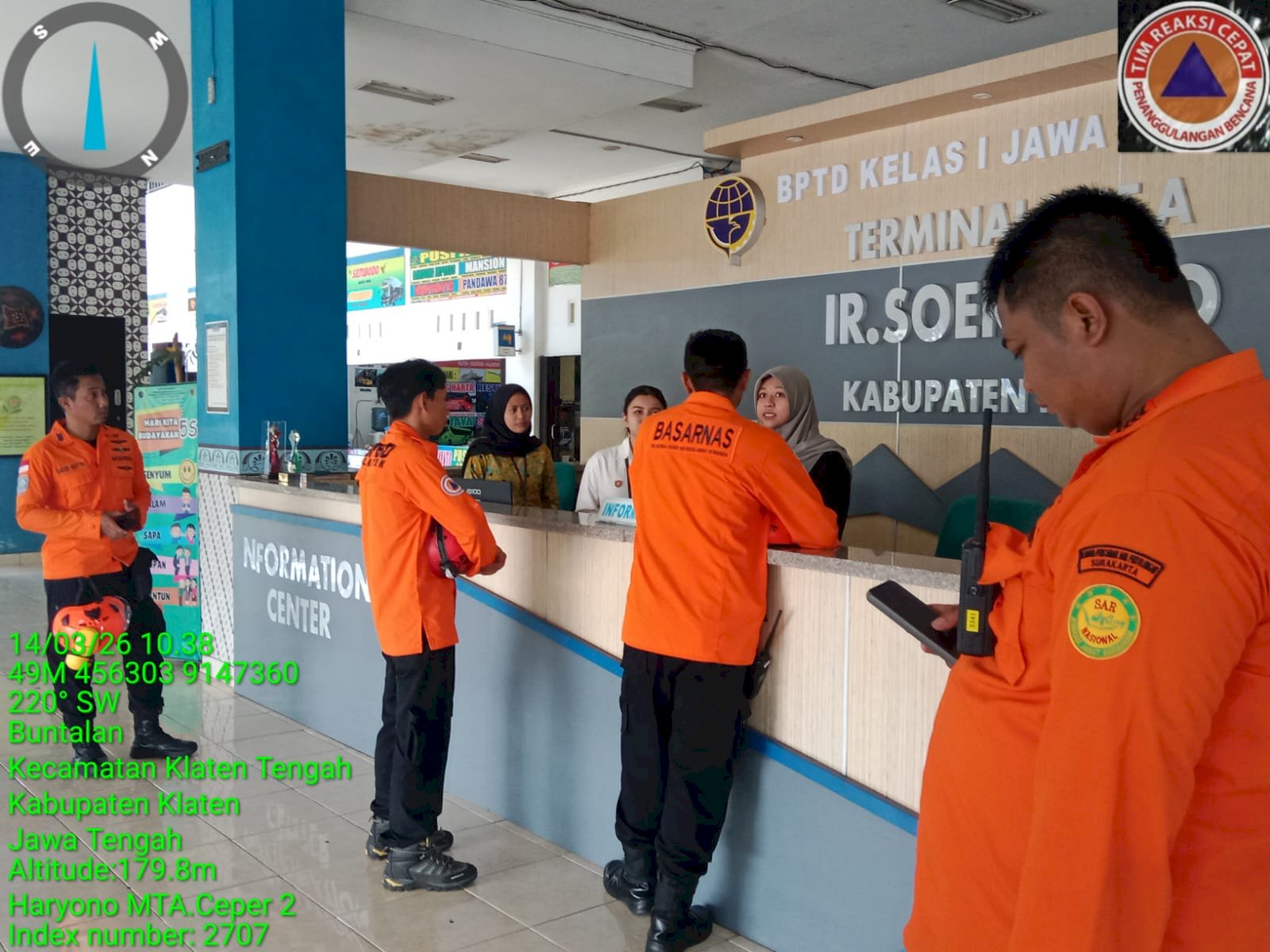 KLATEN - Sabtu (14/3/2026) Dalam rangka mendukung pengamanan arus mudik dan aktivitas masyarakat menjelang Hari Raya Lebaran, BPBD bersama Petugas POSKO SARSUS KLATEN Basarnas Kantor Surakarta melaksanakan giat pemantauan arus mudik lebaran 2026 sarana transportasi umum di Stasiun Klaten dan terminal Ir. Soekarno serta pantauan wisata Rowo Jombor dan Umbul Ponggok.