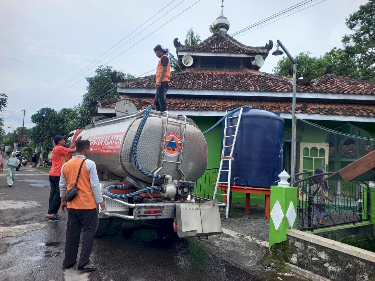 Menanggapi hal tersebut, Badan Penanggulangan Bencana Daerah (BPBD) Kabupaten Klaten mendistribusikan air bersih menggunakan Tangki air pada hari Minggu (1/3/2026) sekira pukul 12.00 WIB.