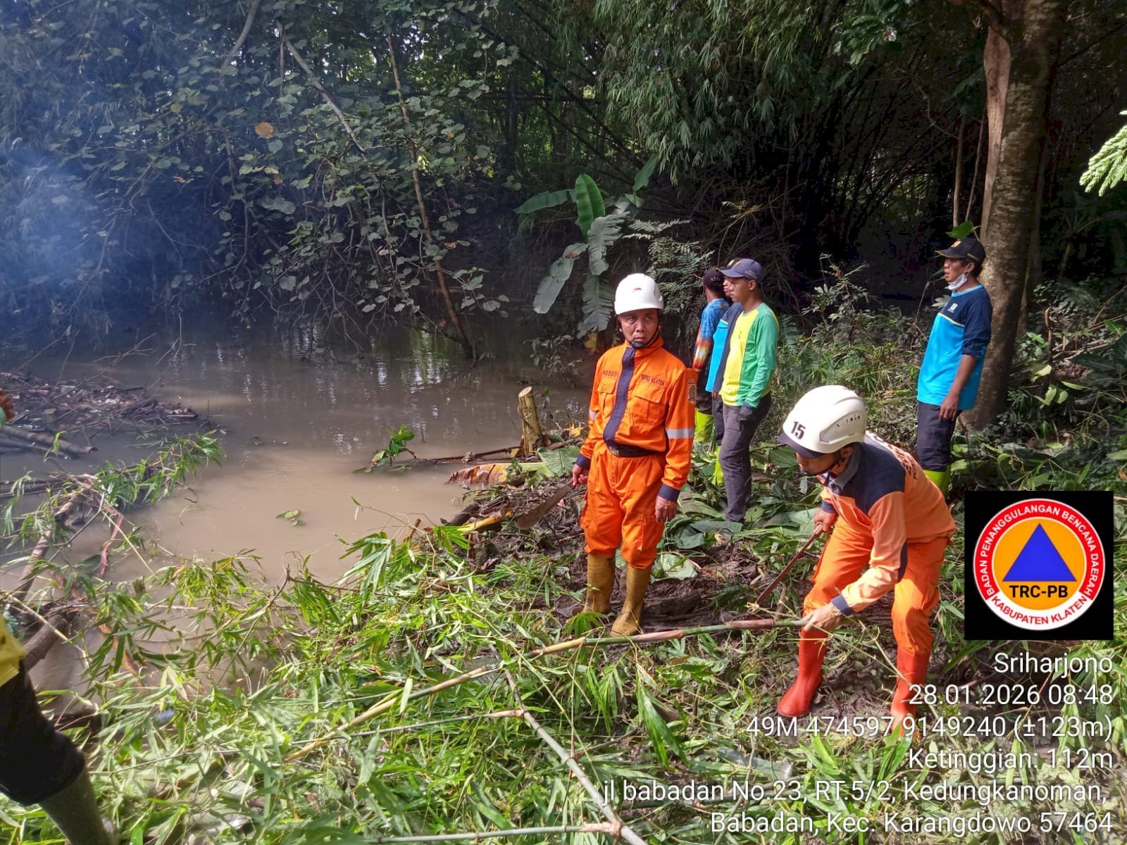 KLATEN - Rabu (28/01/2026) BPBD Kabupaten Klaten berpartisipasi pada gotong royong pembersihan rumpun bambu roboh ke aliran Sungai di Dukuh Kedungkanoman RT 05/ RW 02, Desa Babadan, Kecamatan Karangdowo.